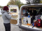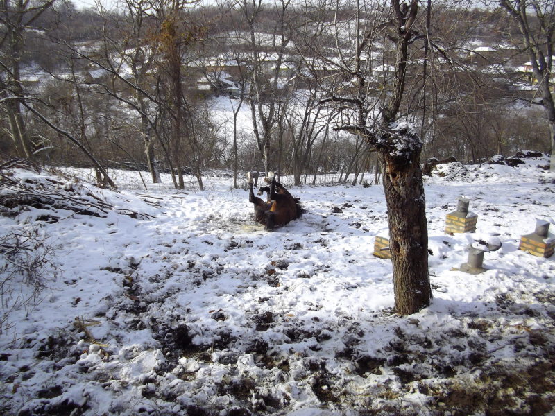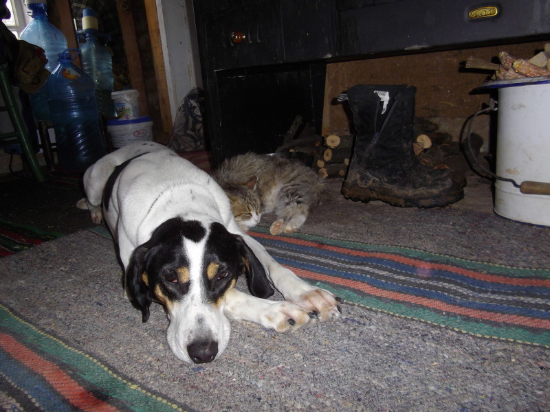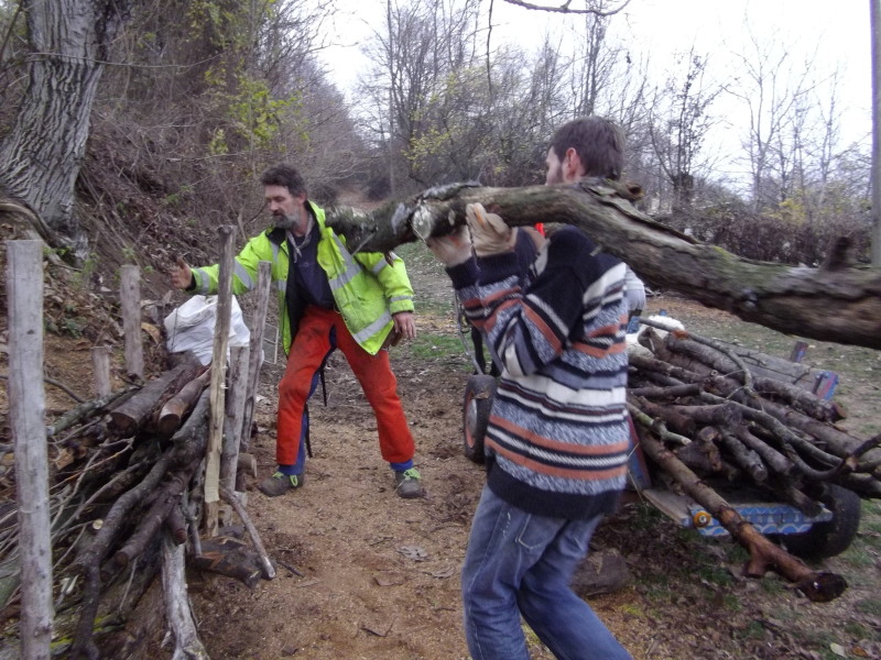 Le 8 Décembre 2012 : Nous sommes chez Lisa & Ewen, avec leur fille Zoé. Ils n'ont pas l'eau courante ni l’électricité. Nous sommes logé dans une autre maison du village avec l’électricité et un bon poêle à bois. Nous les aidons à se préparer pour l’hiver. Le jardin est maintenant protégé du gel. Nous avons rentré la nourritures pour les animaux (2 cheveux Sarah et Fairly, 3 chèvres Blacky, Withy et Blachy's Son) et le bois pour l'hiver. Ici pas d'internet donc les photos suivantes la semaine prochaine!